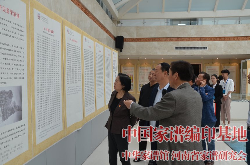 展览开幕后,中国民办教育协会监事会主席、黄河科技大学董事长胡大白一行实地参观了展出的各姓氏家谱家训。