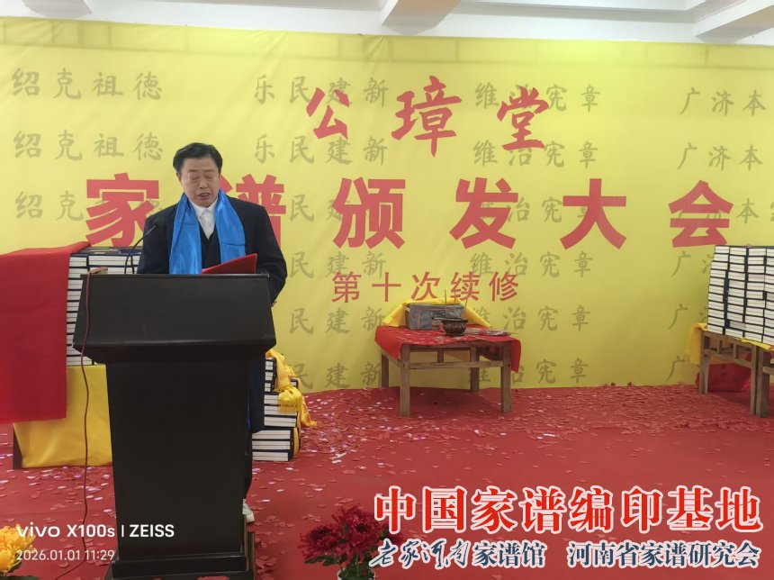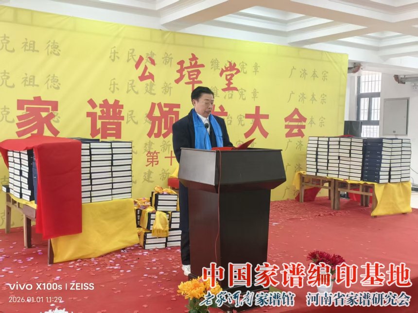 2026年1月1日,河南省新乡市封丘县李氏宗谱颁谱大会在此间隆重举行。河南省姓氏文化研究会家谱委员会常务副会长、老家河南家谱馆副馆长牛振合出席活动并致贺词。
