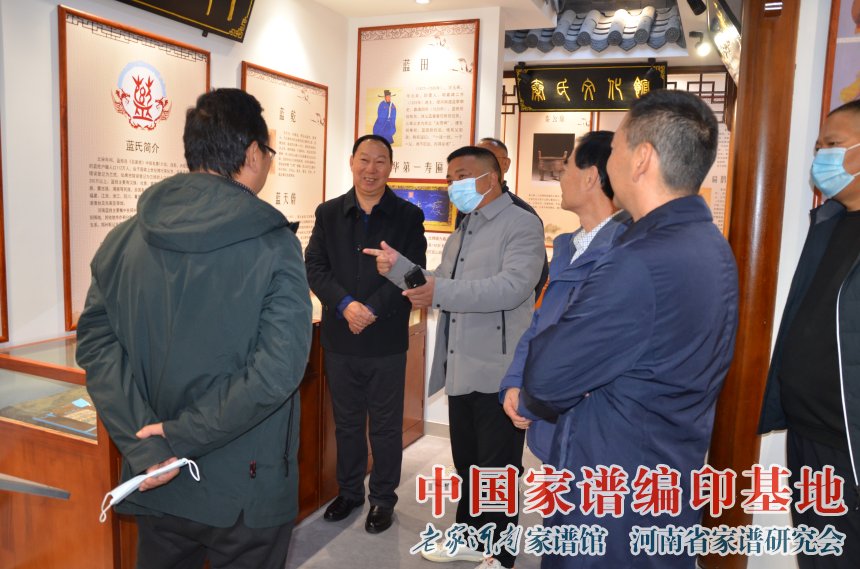 倪姓宗亲参观姓氏家谱综合展厅,听取家谱委员会秘书长杨文杰关于家谱文化起源变迁的介绍