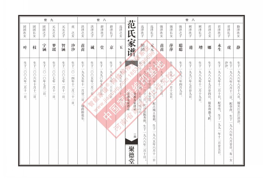 格式特点:世系图和文字记叙部分是分别编写的,二者相互对应,世系图采用宝塔式,清晰明了,世辈关系一目了然。