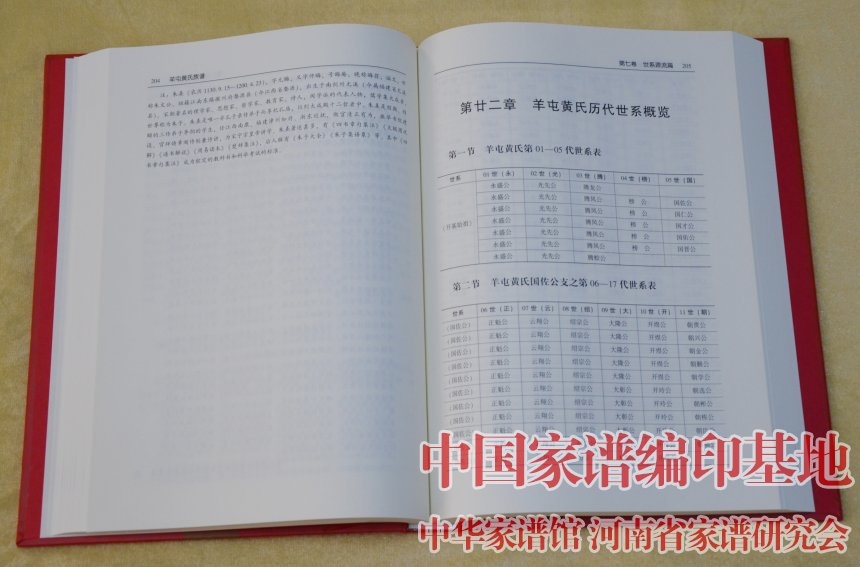 (二)为供族裔参阅,在第七卷“黄氏源流篇”,首编“中华黄姓百代总谱系”;次编当世公认“三妻二十一子”之峭山公“远祖源流世系”;再编“羊屯黄氏历代世系”。