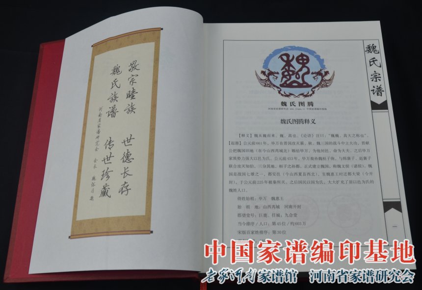 日前,由中国家谱编印基地负责设计排版的《魏氏宗谱》印刷完毕、顺利交付。